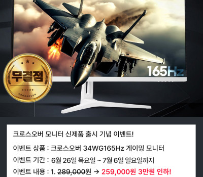 (출시행사 25만9천원) 34인치 21:9 165Hz 게이밍 모니터 크로스오버 34WG165Hz
