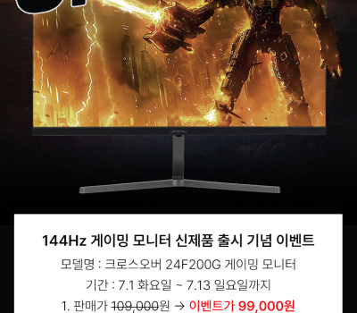 (출시이벤트) 24인치 광시야각 144Hz 게이밍 크로스오버존 모니터 24F200G 등장