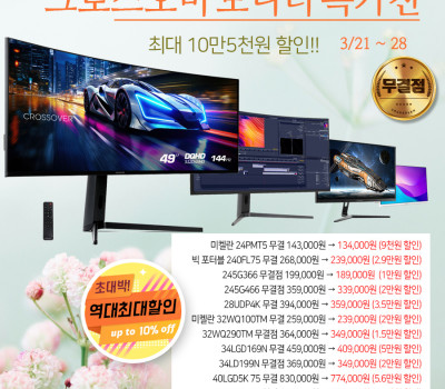 최대 10만5천원 할인! 크로스오버존 인기 고해상도 모니터, 3월 마지막 특가 실시!!
