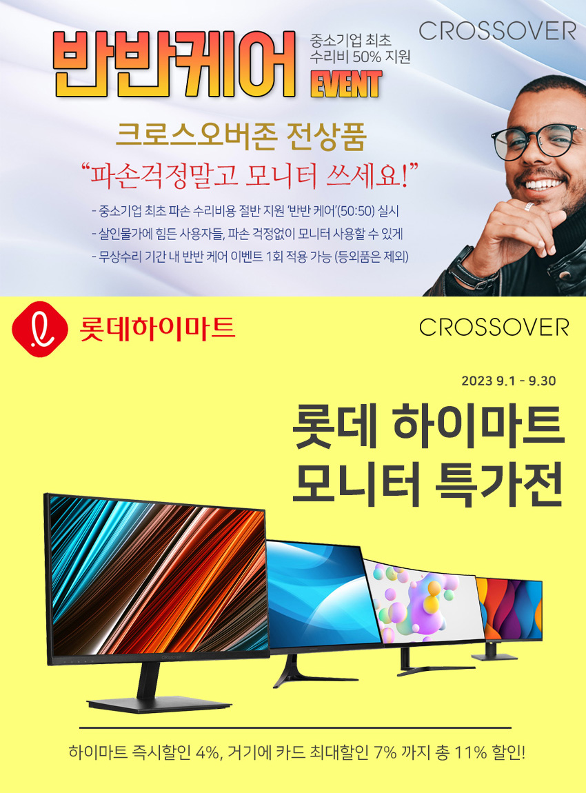 롯데 하이마트에서 9월 1일 금요일부터 30일 토요일까지 진행되는 이번 행사에서 크로스오버존의 다양한 모니터들이 특별한 가격에 판매된다.