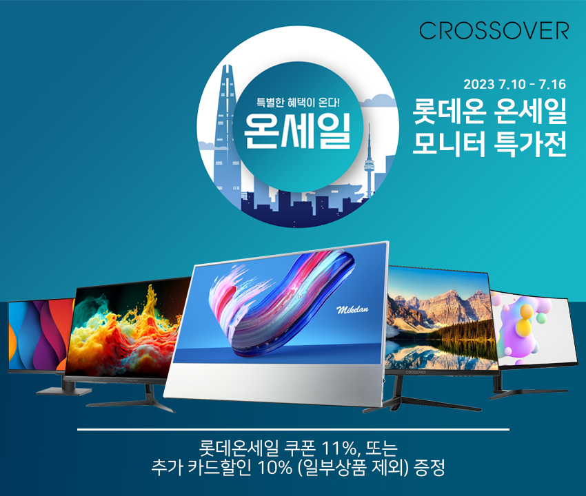 토털 디스플레이 브랜드 크로스오버 (주 크로스오버존, 대표 이영수, www.crosslcd.co.kr)는 자사의인기 모니터 128종을 대상으로 롯데온 2023년 7월 온세일 특가 할인전을 진행한다고 밝혔다.
