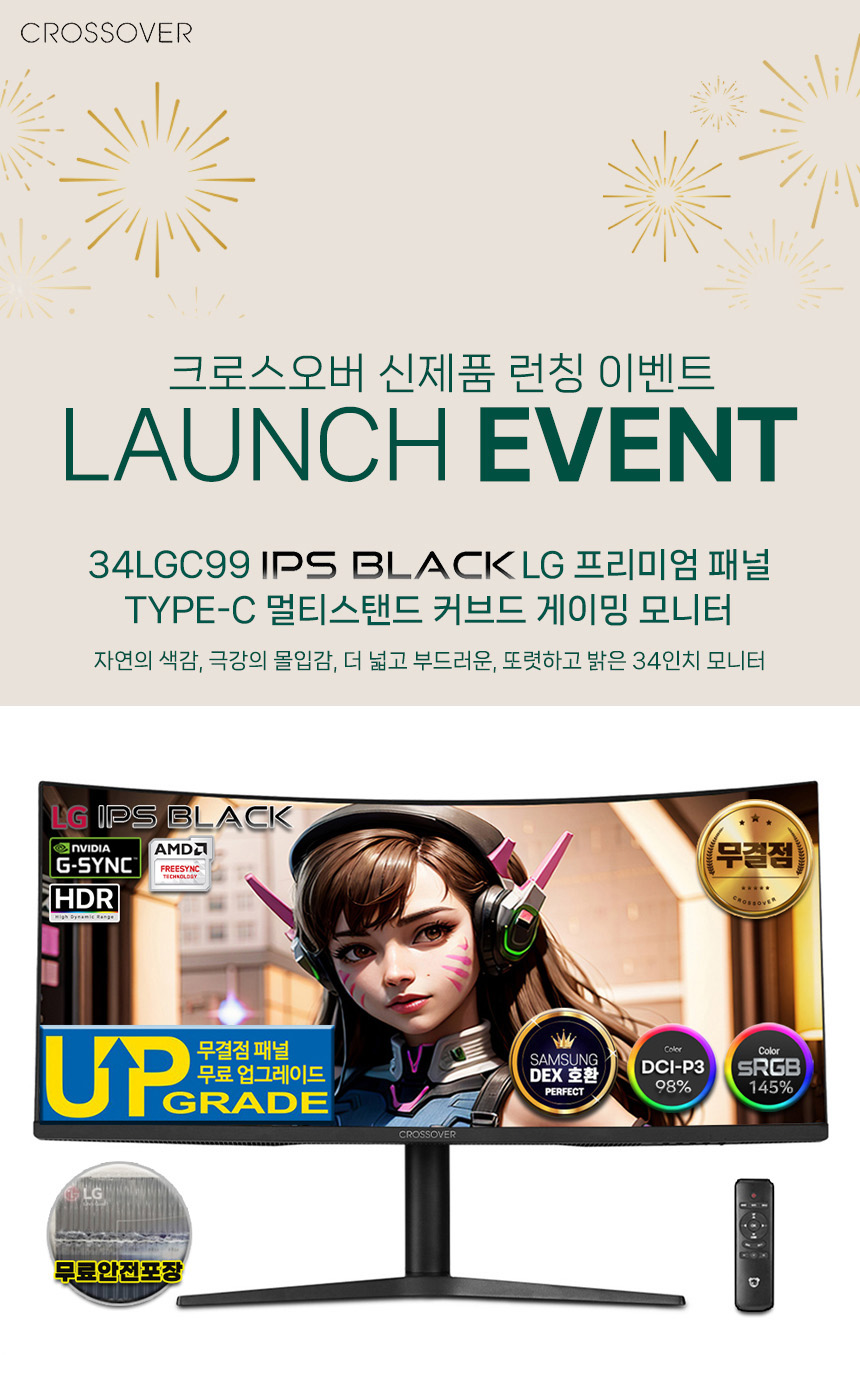 디스플레이 전문기업 ㈜크로스오버존(대표 이영수, www.crosslcd.co.kr)이 34형 울트라와이드 모니터 ‘34LGC99 IPS 커브드 PREMIUM TYPE-C 멀티스탠드’ 출시를 기념하고자 무결점 무료 업그레이드 및 특가 이벤트를 진행한다고 밝혔다.