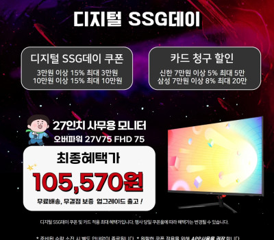 27인치 광시야각 75Hz 모니터 무결점 10만5천원, 크로스오버+신세계 디지털SSG 데이 특가