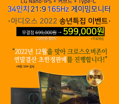 마감 임박 599,000원! 34인치 나노IPS 21:9 165Hz 커브드 크로스오버 게이밍 모니터 송년특집