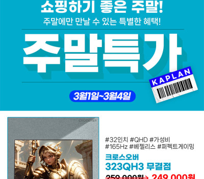 (주말엔특가 24만9천원) 32인치 QHD 165Hz 게이밍 모니터 크로스오버 323QH3 플러스 무결점 -…