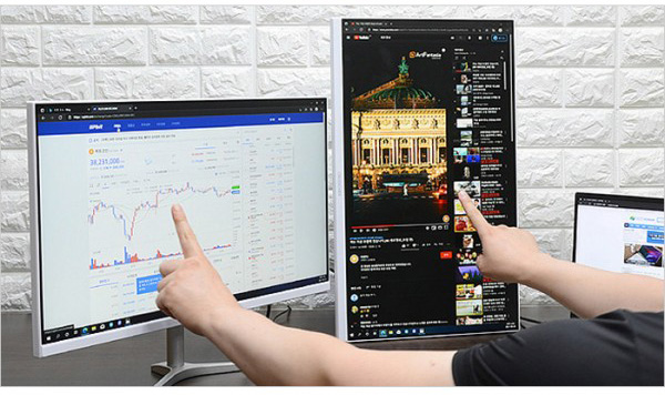 주식이나 가상화폐 차트의 경우 많은 정보를 확인해야 하기 때문에 대화면이 필수적이다. 대화면에 터치까지 더해지면 사용하면 빠르게 원하는 메뉴를 선택하거나 거래를 할 수 있어 전업 투자자들이 특히 크로스오버 빅포터블 모니터를 선호하고 있다. 크기가 작아 주식이나 가상화폐 거래용으로 사용하기 힘든 일반 포터블 모니터와는 확연한 차이를 경험할 수 있을 것이다.