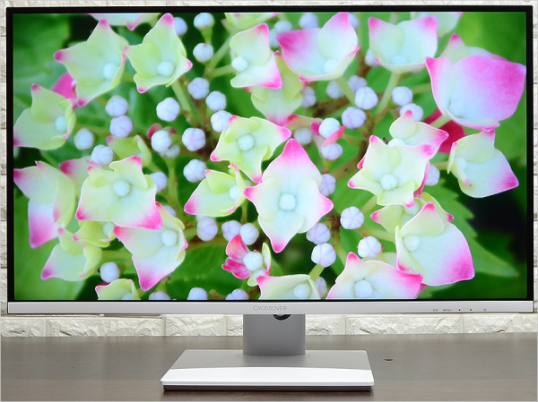 전면 디스플레이의 모습으로 27형의 크기에 QHD (2560 x 1440) 해상도를 지원한다. 1,670만 컬러의 IPS 패널을 사용해 시야각으로 인한 불편없이 선명한 영상을 즐길 수 있으며 고해상도 모델답게 FHD 모니터와는 확연히 다른 디테일을 보여주었다.